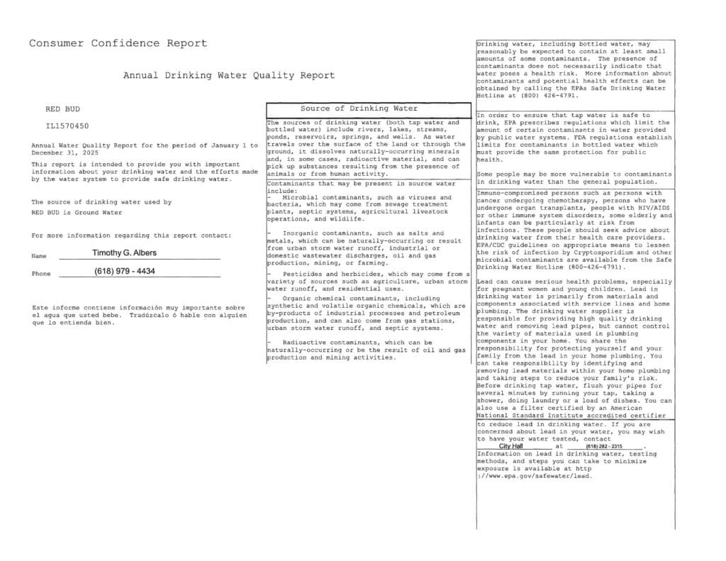 Each year, municipalities are required to share a Consumer Confidence Report (CCR) with residents. This report provides an easy-to-read summary of your community’s drinking water quality, where the water comes from, and how it meets federal and state safety standards.